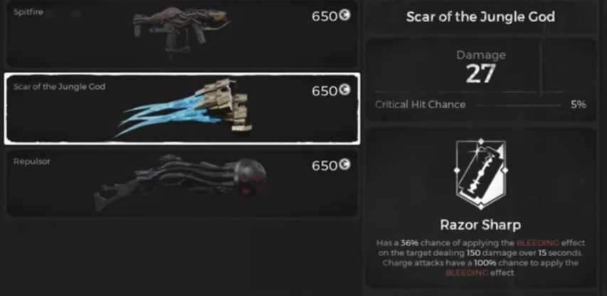 Альтернативно в мире с джунглями может заспавниться босс-собака Разоритель, который еще любит катать местную фауну на спине, чтобы она обстреливала главного героя. Если влететь на арену с двух ног, то босс будет драться. Валим его как угодно, за что получаем это оружие. Про него, увы, ничего не могу сказать, так как этот босс мне ни разу еще не попадался…