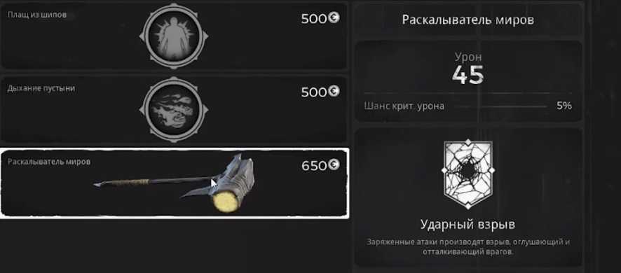 Второй босс мира ром – это клавигер. Непонятное существо с множеством рук и похожее на грута. Сомнительный босс, честно сказать. Если мы сможем одолеть его любым способом, то получим камень стража, за который сможем сделать колотушку под названием раскалыватель миров. Очень громкое название. Дубинка заряженной атакой умеет делать АОЕ, тем самым толкая и нанося урон нескольким противникам.