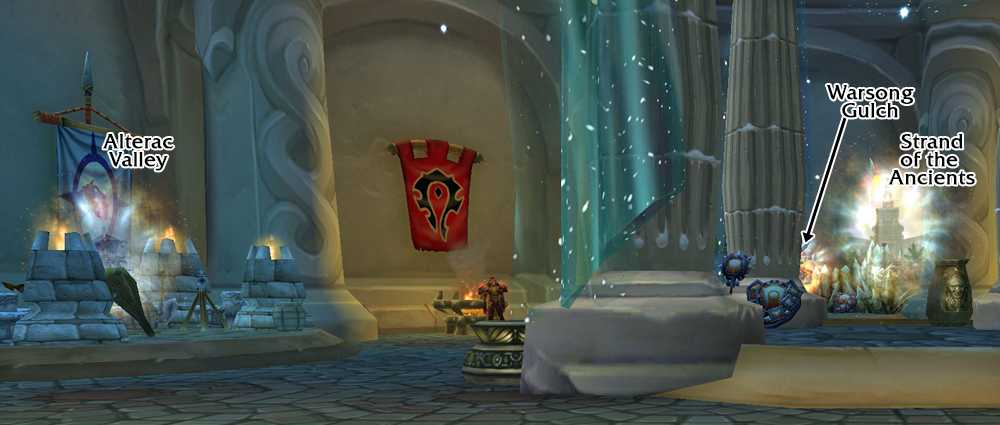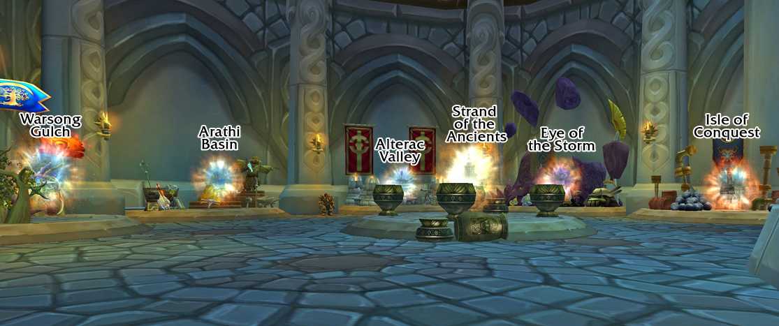 Поле сражений Альянса в Даларане находится в Серебряном анклаве, зайдя ко входу к северо-западу от таверны. Поднимитесь по лестнице, и вы найдете порталы на все шесть полей сражений: