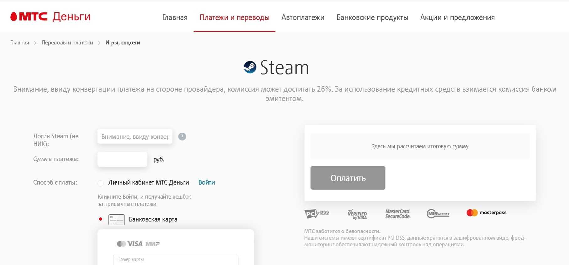 Если не получится, то попробуйте позже. Пополнить кошелек Steam через МТС-банк не всегда удается с первого раза.