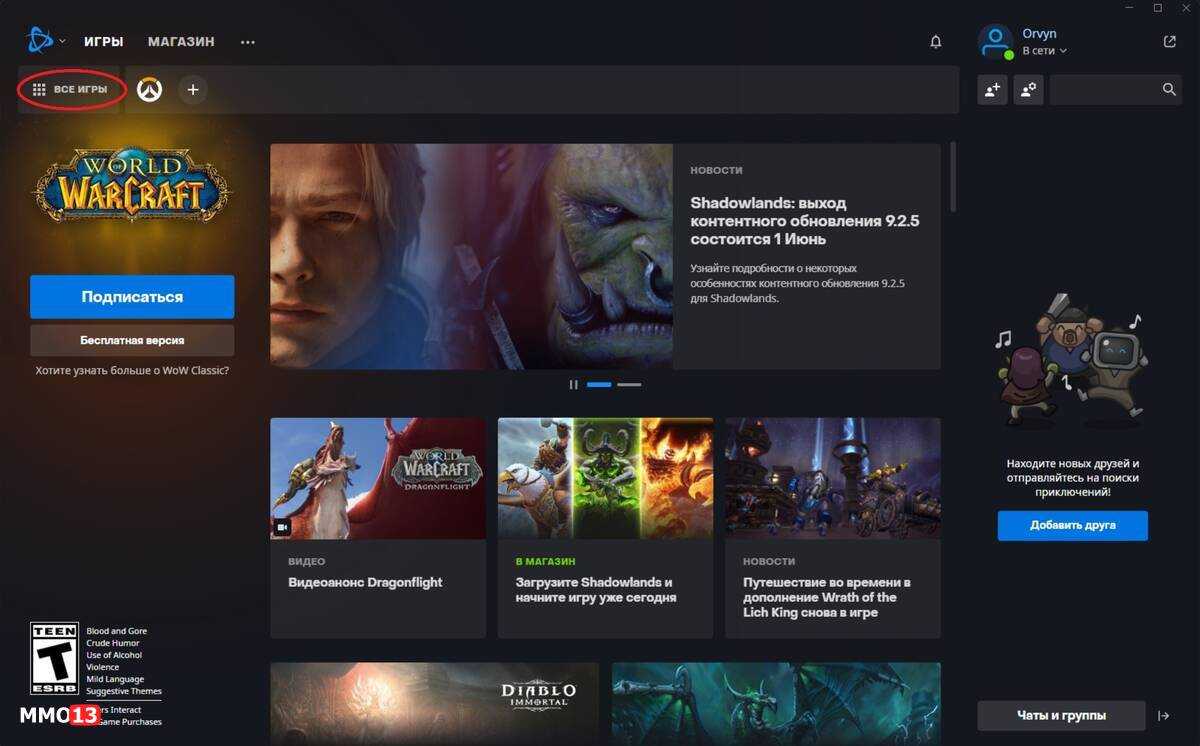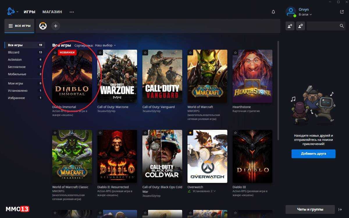 4. Теперь необходимо поставить Diablo Immortal на закачку. Сделать это можно несколькими способами, но в нашем примере мы перешли в раздел «Все игры», где и выбрали игру.