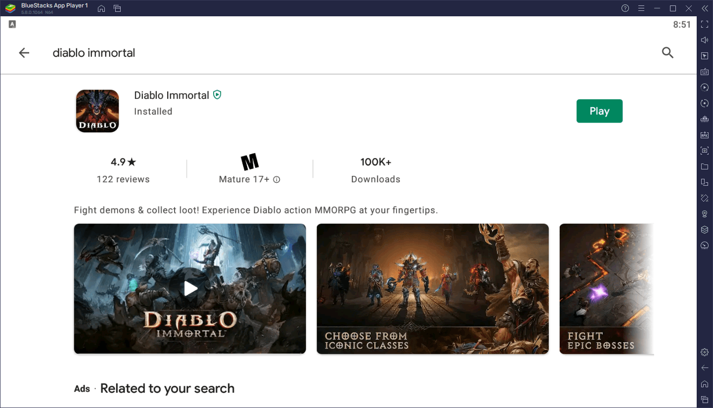 - Найдите и установите Diablo Immortal в Play Маркете так же, как на своем телефоне.