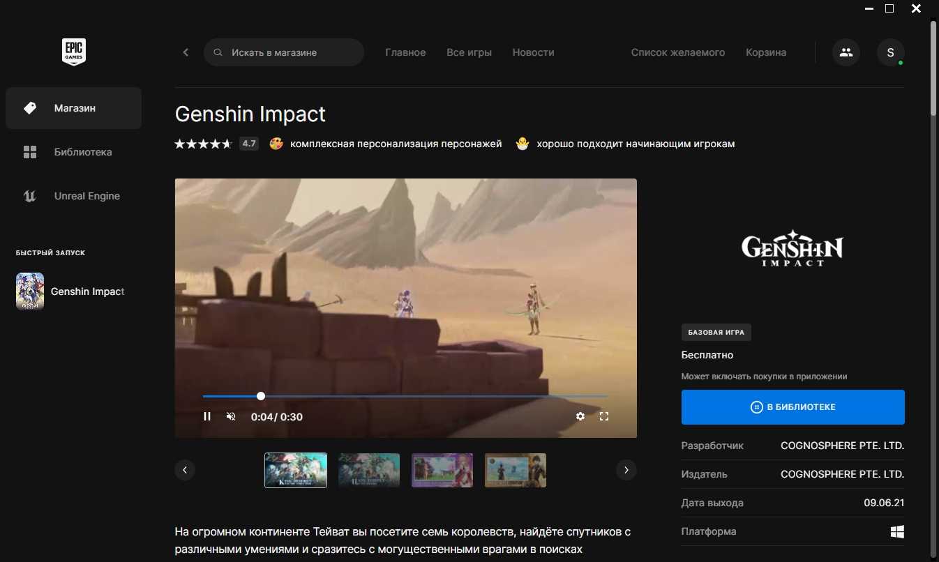 На сегодняшний день у игроков из России есть один официальный проверенный и рабочий способ покупки Кристаллов Сотворения, Боевого пропуска и Благословения полой луны в Genshin Impact – оплата товаров через Epic Games Store. Для начала выполните следующие действия: