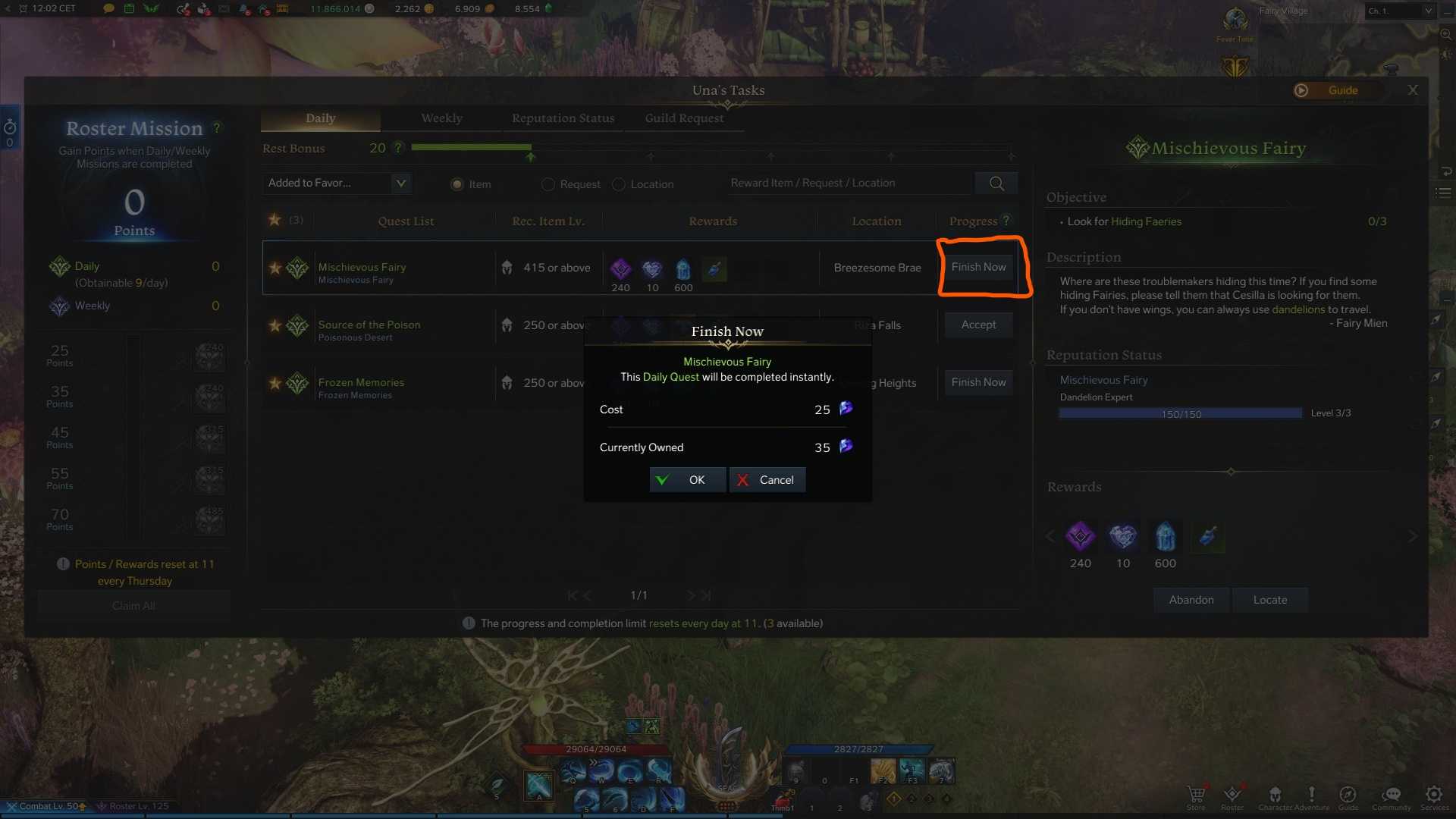 Ежедневные задания обновляются в одно и то же время (11AM по серверу), каждый персонаж может выполнить три таких задания.