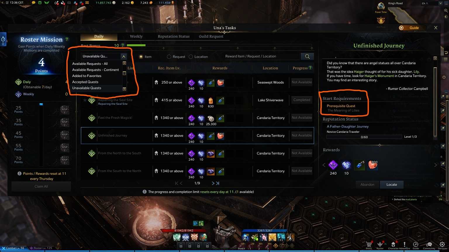 Некоторые ежедневные задания появляются в списке автоматически, по мере открытия новых локаций. Для некоторых требуется пройти сюжет в конкретной локации или выполнить желтое/фиолетовое задание.