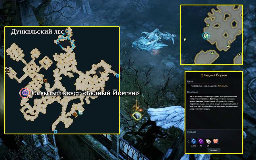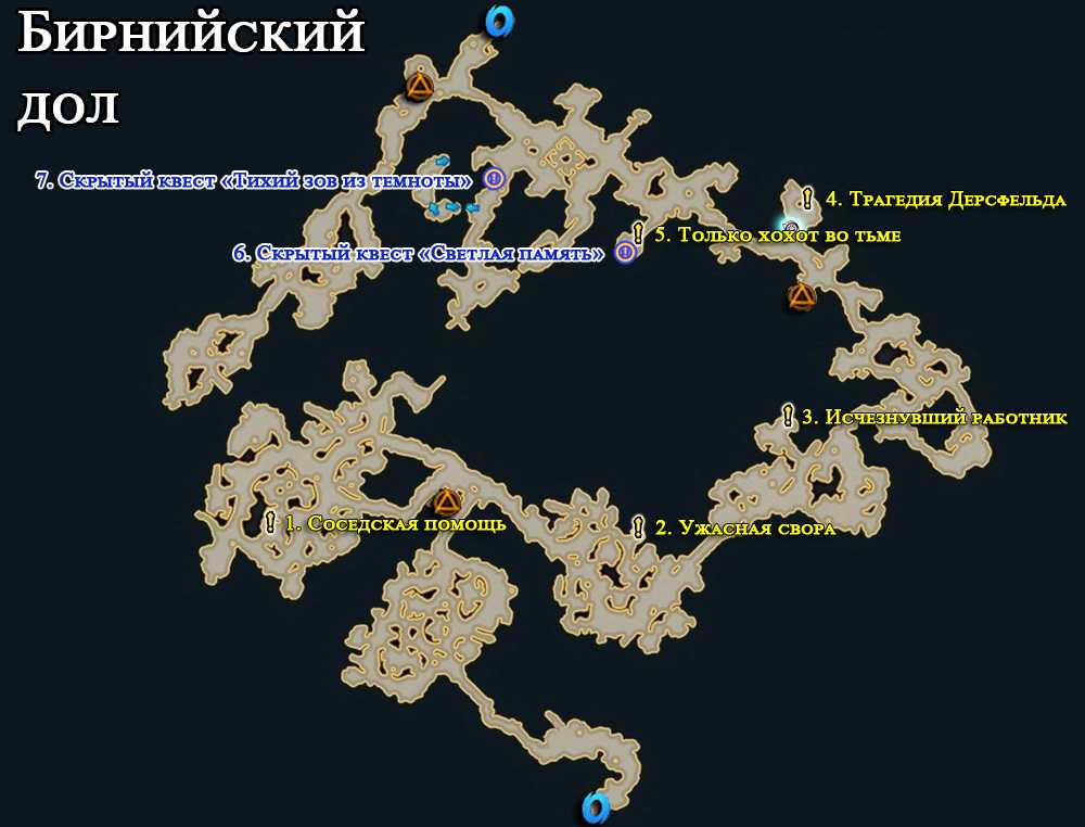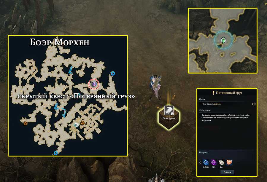 Чтобы добраться до этих двух скрытых заданий, нужно выполнить множество желтых квестов в локации.