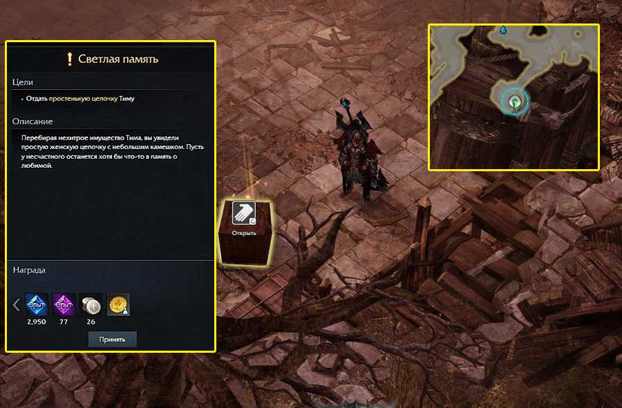 Квест станет доступен после выполнения сюжетной миссии локации «Прихожане церкви Руфеона».
