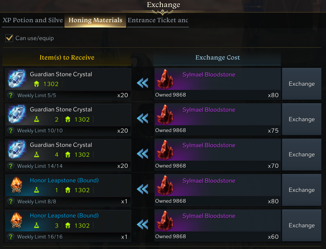 В магазине гильдии можно купить зелья на опыт, сундуки с серебром, материалы для улучшения экипировки и билеты. Чем выше уровень магазина, тем больше товаров в нем можно купить. Уровень персонажа должен соответствовать уровню магазина гильдии.