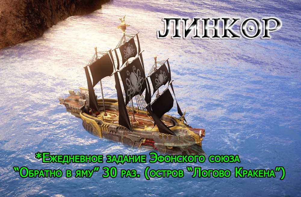 “Для получения линкора нужен еще и “Золотой якорь”. Покупается на каравелле Гильдии гарпунеров возле Рохэнделя за 5000 монет кратоса” – цитата комментатора Романа, спасибо ему за дополнение.