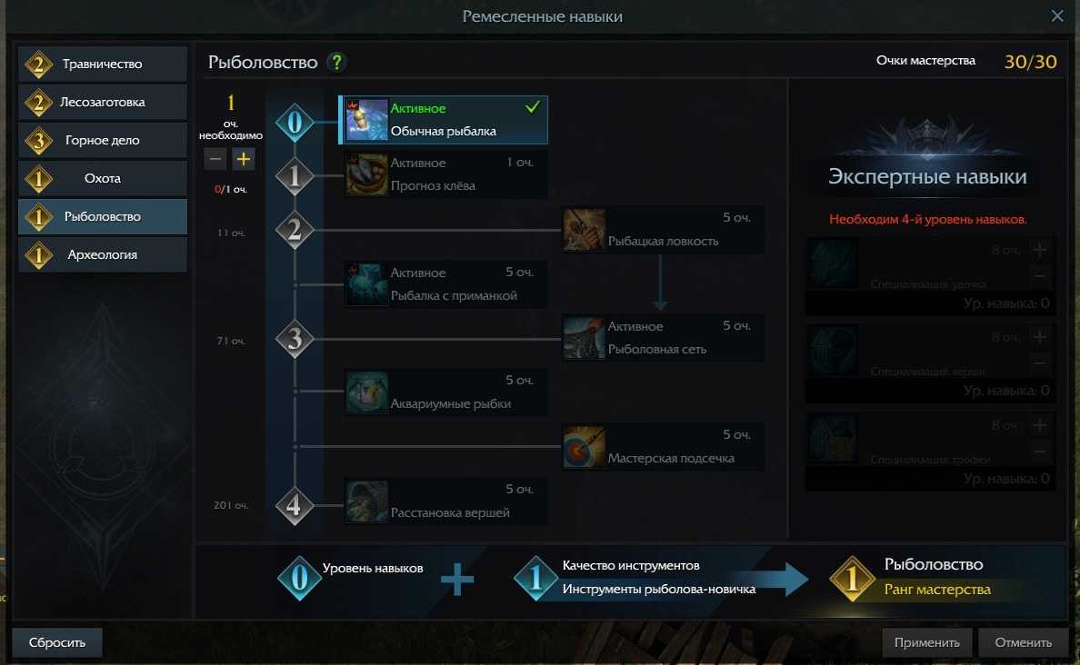Рыболовство можно прокачивать как первую профессию, а после приобретения опыта поменять на другую по мере необходимости.