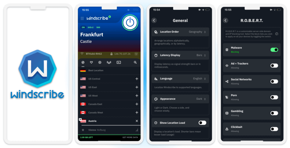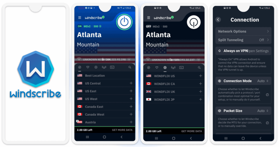 Windscribe — хороший бесплатный VPN для Android и просмотра потоковых трансляций