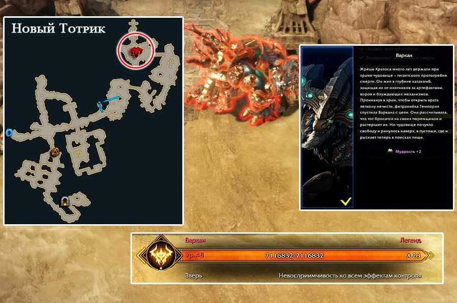 Появляется примерно раз в полчаса в дальнем углу Нового Тотрика. Из него может выпасть снаряжение 240-260-го уровня, артефакты для Атласа, карта сокровищ для секретного подземелья.