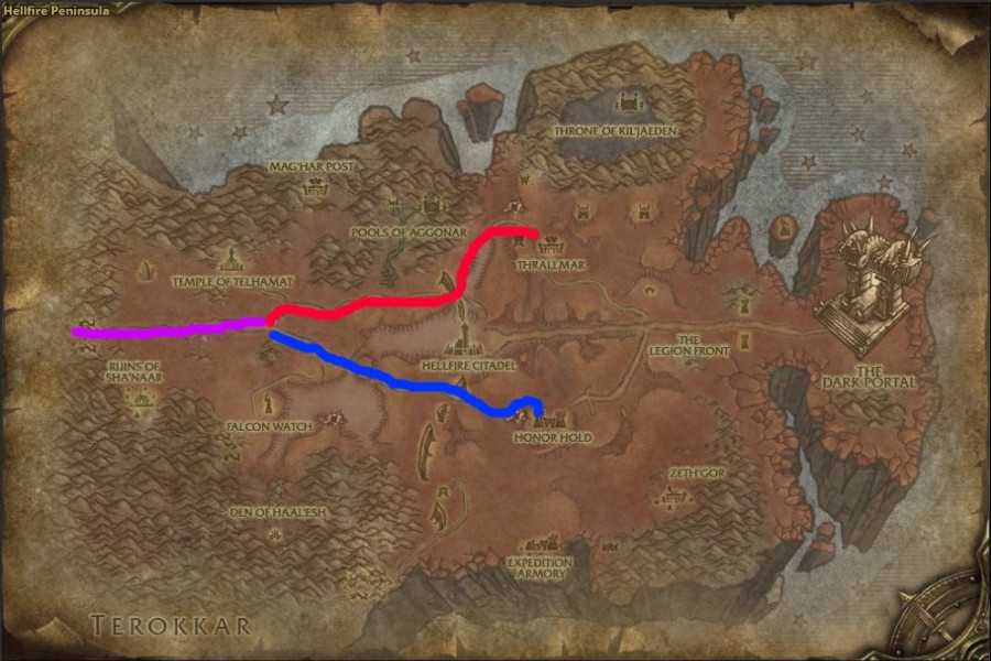 Дальше мы идем в Запределье. Портал в него можно найти в Оргриммаре, на Аллее Духов. Телепортнулись, берем квест и переходим через портал. Сдаем квест и летим в Тралмар.