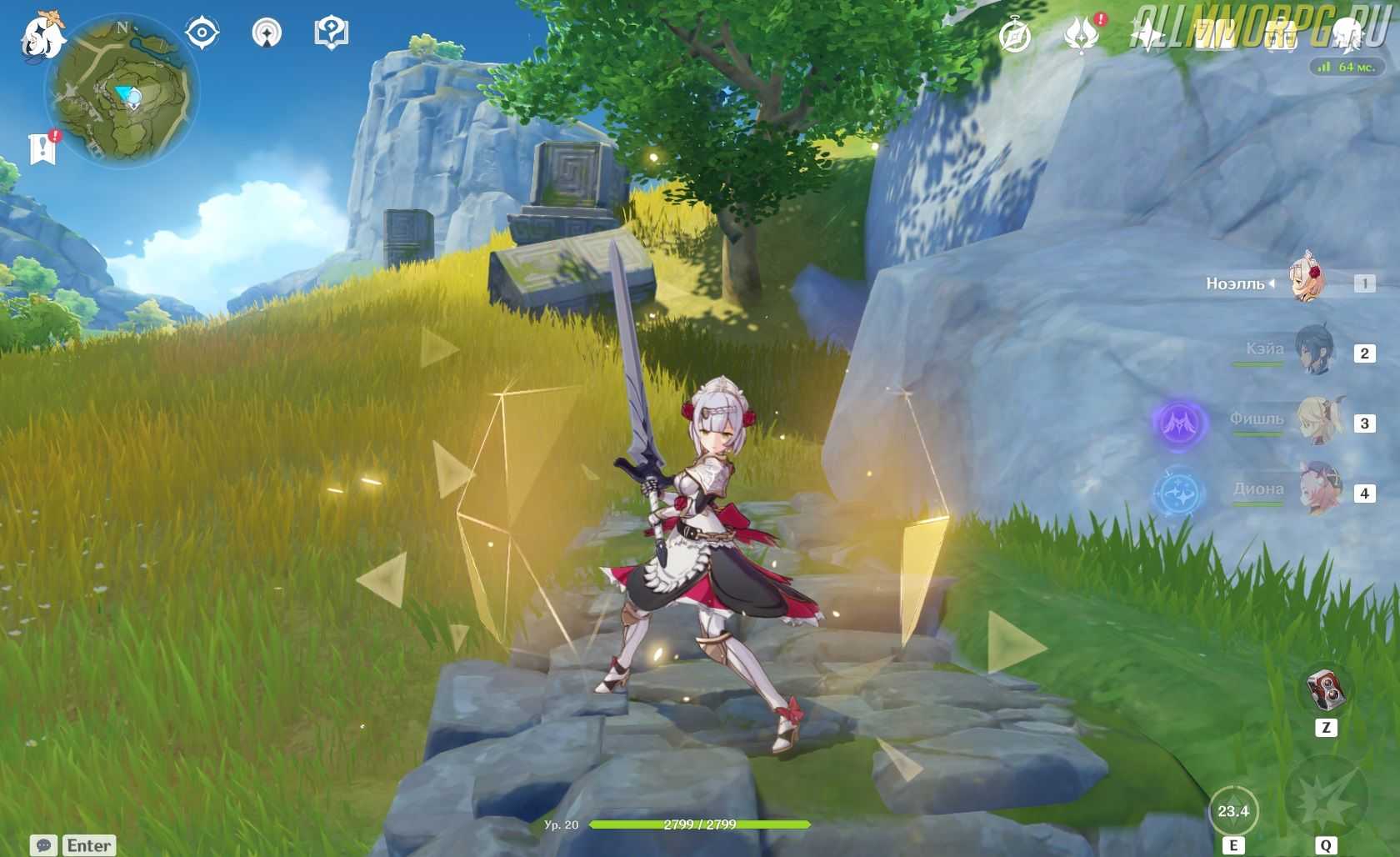 Важно! Последний, четвертый удар обычной атаки отбрасывает врагов, но у него слишком долгая анимация. Чтобы сбросить анимацию и не дать противнику отойти от Ноэлль, используйте рывок