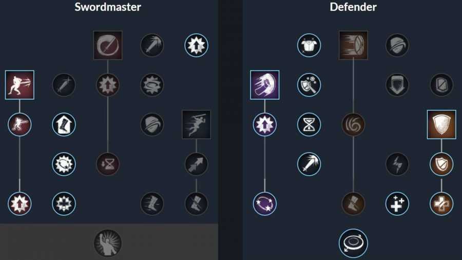 Способности, которые мы рекомендуем для древа мастера меча и защитника, следующие: