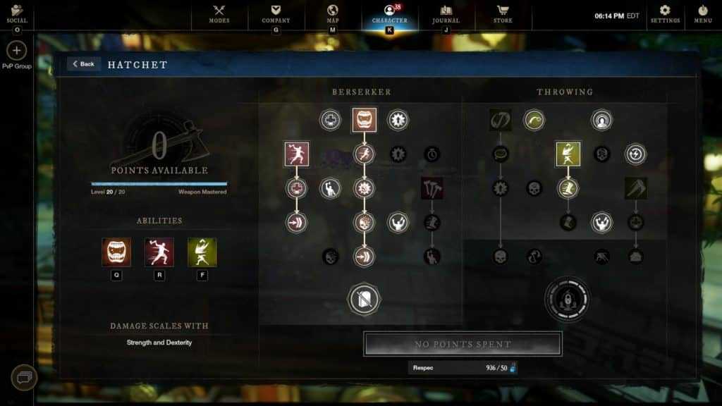 For this build you are going to utilize your hatchet for damage, crowd control breaks, an additional dodge, and self sustain. The recommended active abilities for the hatchet are the following: