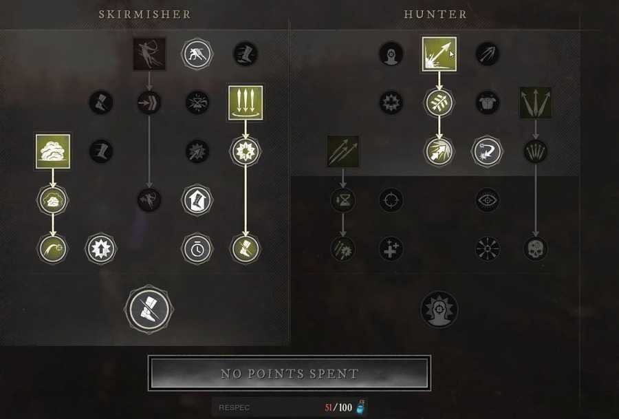 You open a ranged engagement with a Shooter’s Stance, place a Trap, and then hit a Powder Burn. In general, you should pick up Active skills first, then prioritize the passives based on your playstyle.