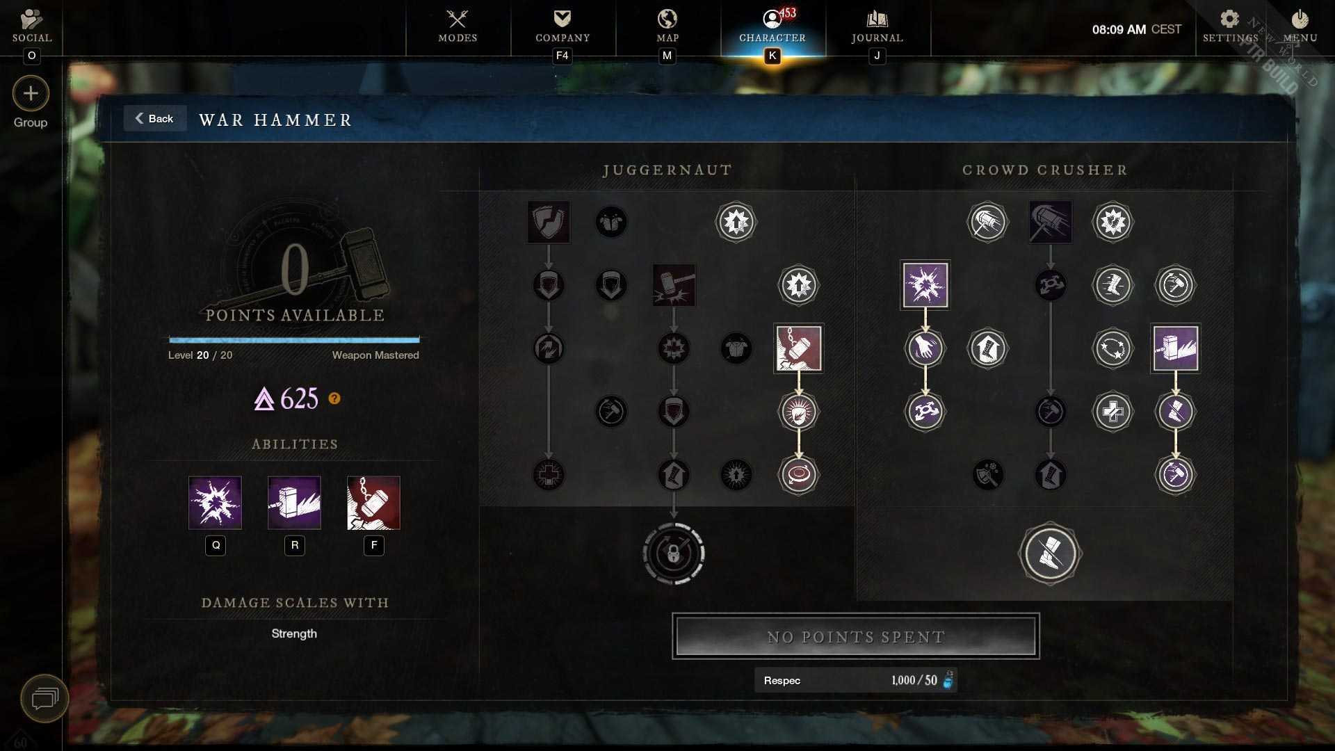Recommended skills to use for the War Hammer Greatsword Build: