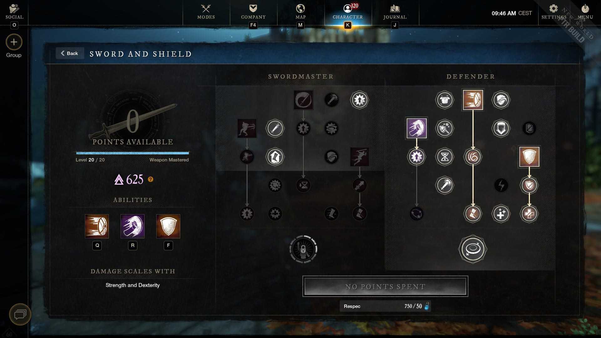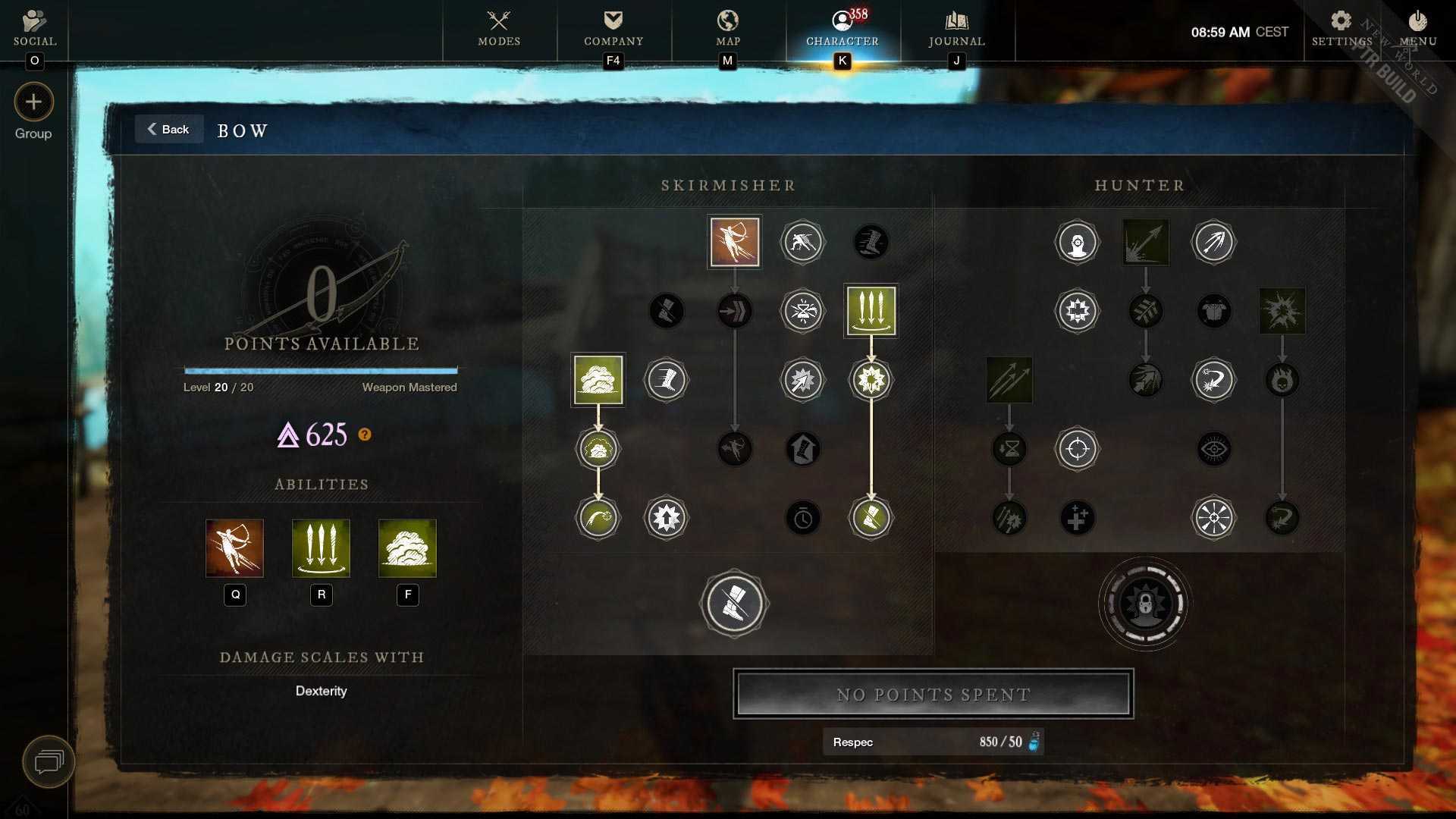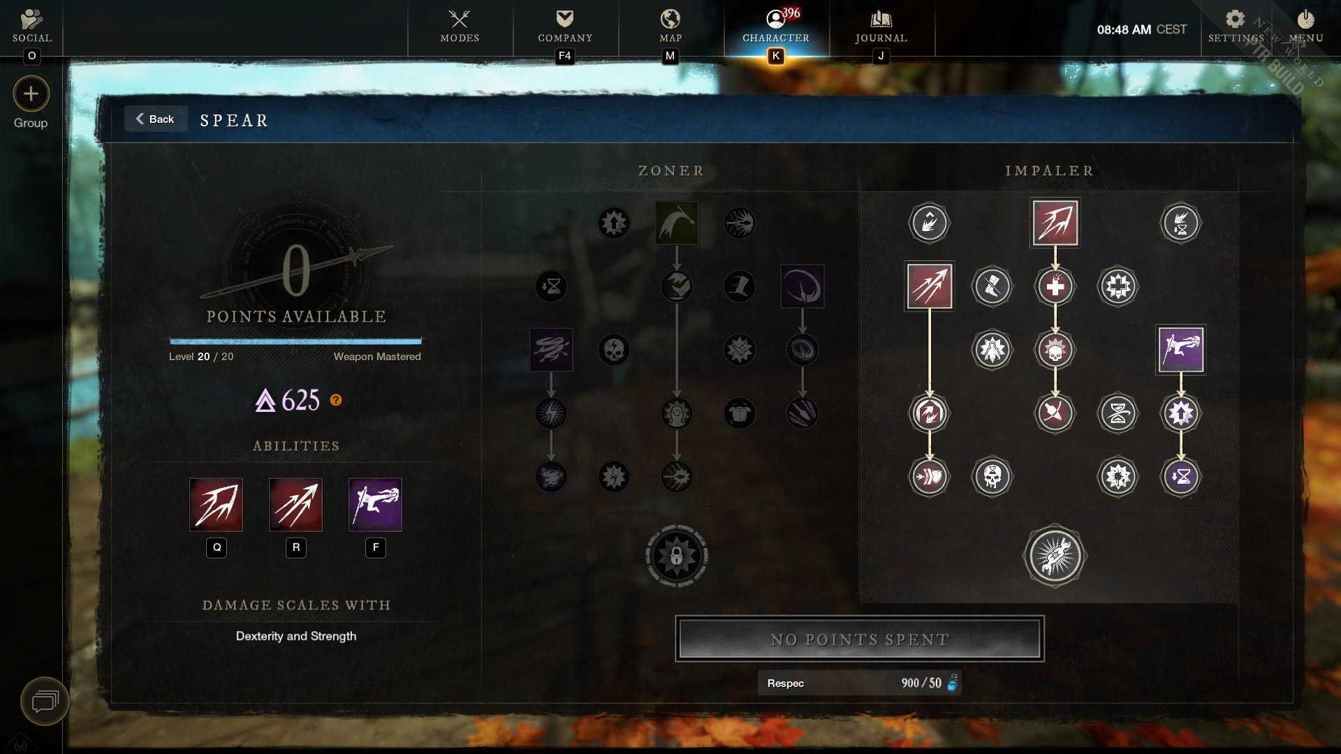 - Main stat attributes: 300 points into Dexterity, then Strength/Constitution