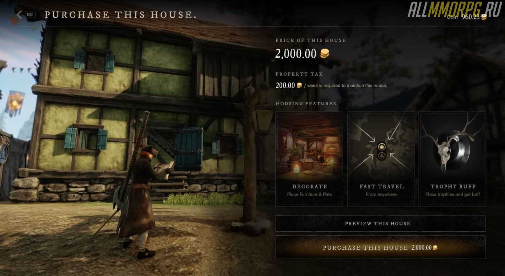 Жилье в New World работают по типу подземелий — несколько игроков могут купить один и тот же дом, и каждый из них будет видеть свою версию помещения. Кроме того, игроки могут приглашать домой гостей (все гости должны состоять с хозяином в группе, максимум 4 гостя).