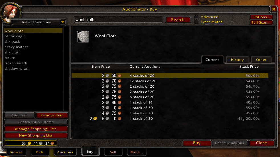 Auctionator Classic – Simple add-on that makes the auction experience easier. It helps searching, buying, and selling items either per stack or per unit. It helps track the cost of items and will store the cost of how much certain items are being auctioned.