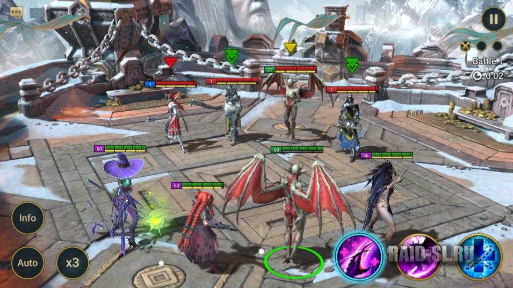 Когда битва начнется, вы попадете на Арену, где ваши Герои и Герои соперника вступят в схватку. Здесь нет мудреных правил и условий – контролируйте свою команду, которая будет состоять максимум из 4 Героев, и сражайтесь против команды врага, в которую могут входить 1-4 Героя.