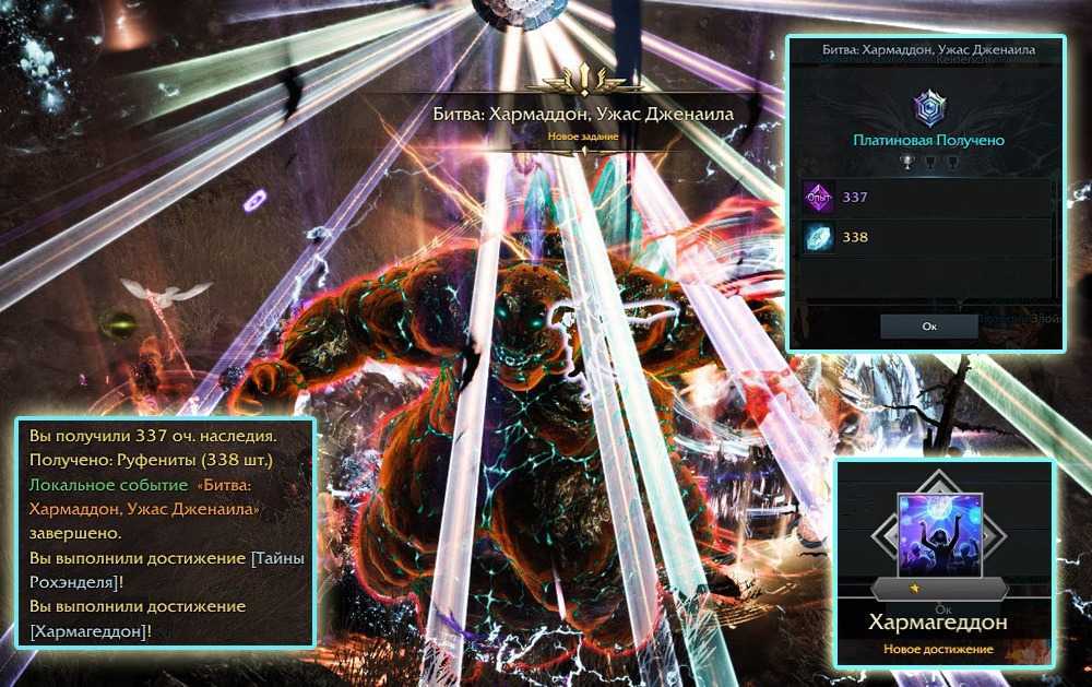 За победу над боссом дадут +3 храбрости, запись в Атласе, немного опыта наследия и достижение «Хармагеддон».