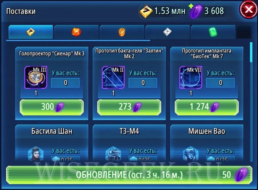 Здесь на других вкладках также можно купить кредиты, тренировочных дроидов за кристаллы. Или сами кристаллы за реальные деньги