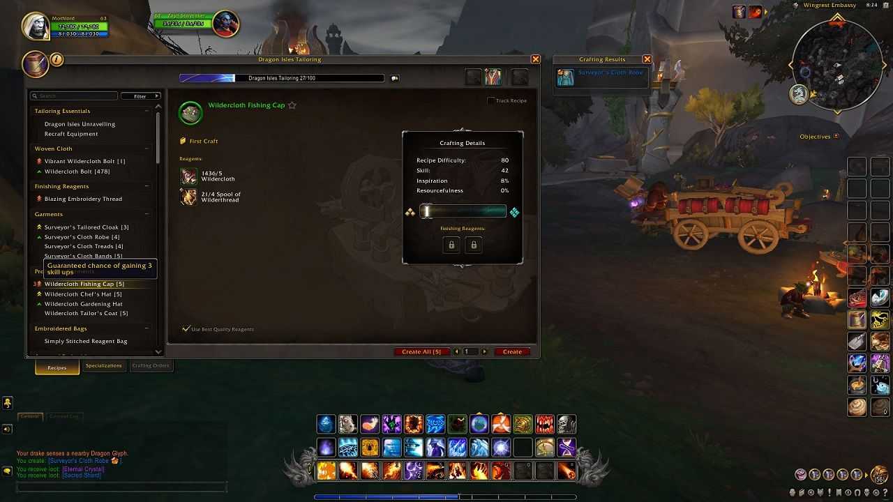 Теперь, когда вы знакомы с основами портняжного дела в Dragonflight, пришло время перейти к главному. Первое, что нужно иметь в виду, это то, что невозможно достичь максимального уровня портняжного дела, просто создавая предметы, полученные по рецептам тренера или продавца. Это повысит навык только до 65-го уровня. Оттуда для достижения 100 необходимы такие вещи, как получение славы, использование новой системы заказов на изготовление или создание профессиональных аксессуаров.