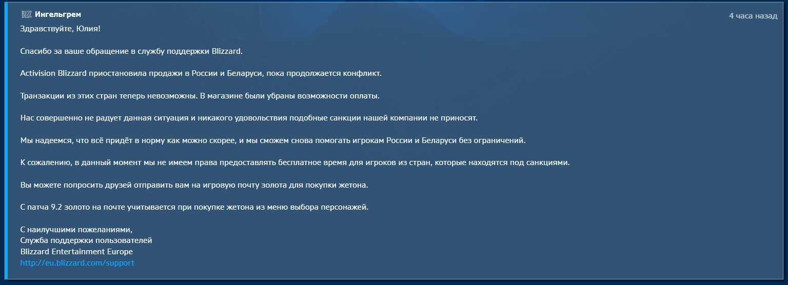 Что касается игрового времени… Сейчас купить игровое время можно только с помощью карты предоплаты и жетона. Ранее его можно было приобрести и с баланса кошелька Battle.net. Но сейчас кошелек батлнета недоступен игрокам из России.