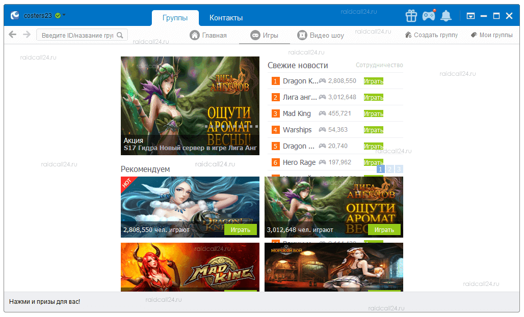 - Создание группы. Все пользователи RaidCall могут создавать группы для общения и приглашать туда друзей и товарищей по игре.