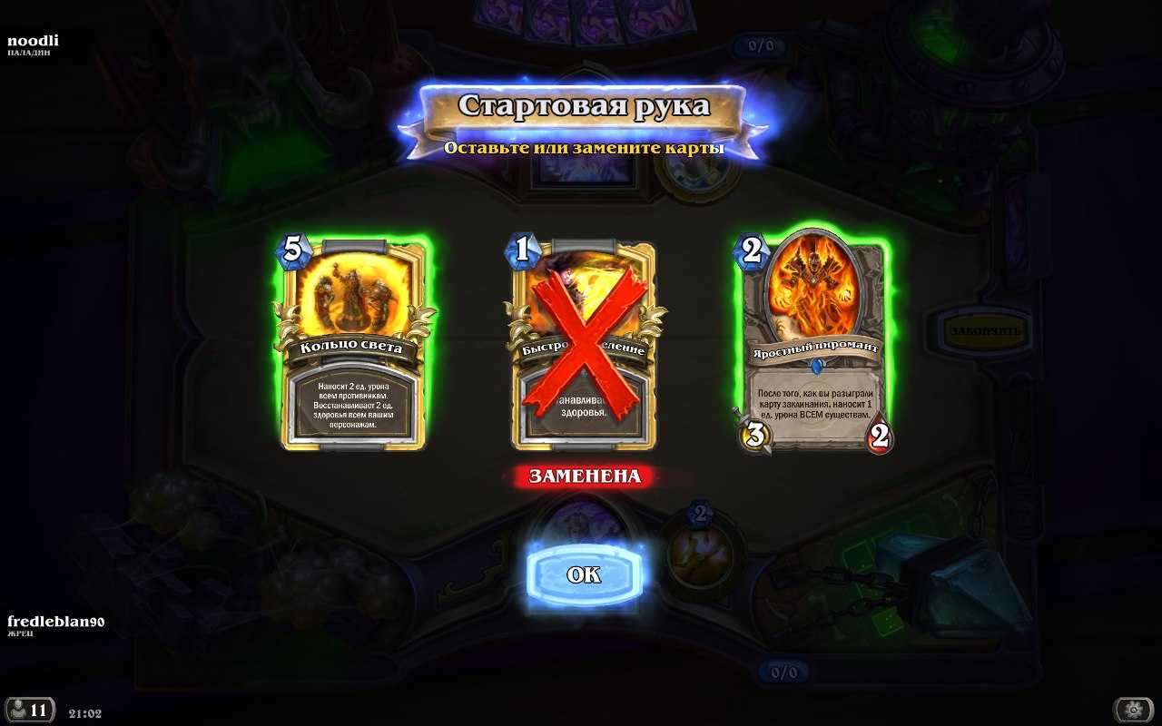 Ниже представлены карты, которые желательно заполучить в свою стартовую руку, играя за Нечетного Паладина.