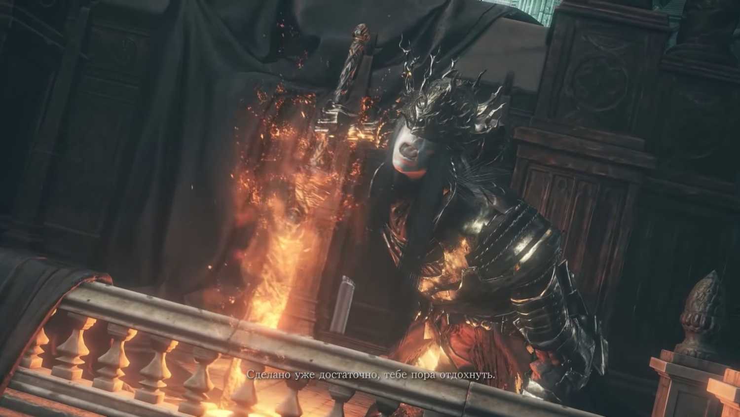 Начинается битва с одним из рыцарей. Лориан приземляется на арену и может нанести огромный урон. Лучше набрать дистанцию в это время. Босс использует телепортацию, чтобы наносить коварные удары сзади и сбоку. Уворачиваемся от этих атак и бьем его. У Лориана есть слабость к молниям, что крайне желательно использовать.