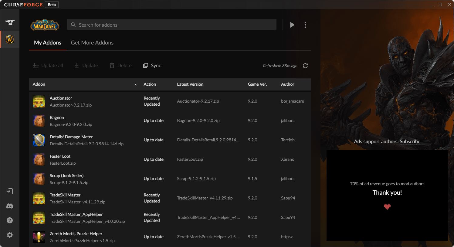 1. Download only with a special application called Curseforge. If you download from another resource, there is always a risk of catching a virus or getting the wrong file. The exceptions are modifications called ElvUi/TukUi. They are not in the application, but the developers have proved themselves since 2009;