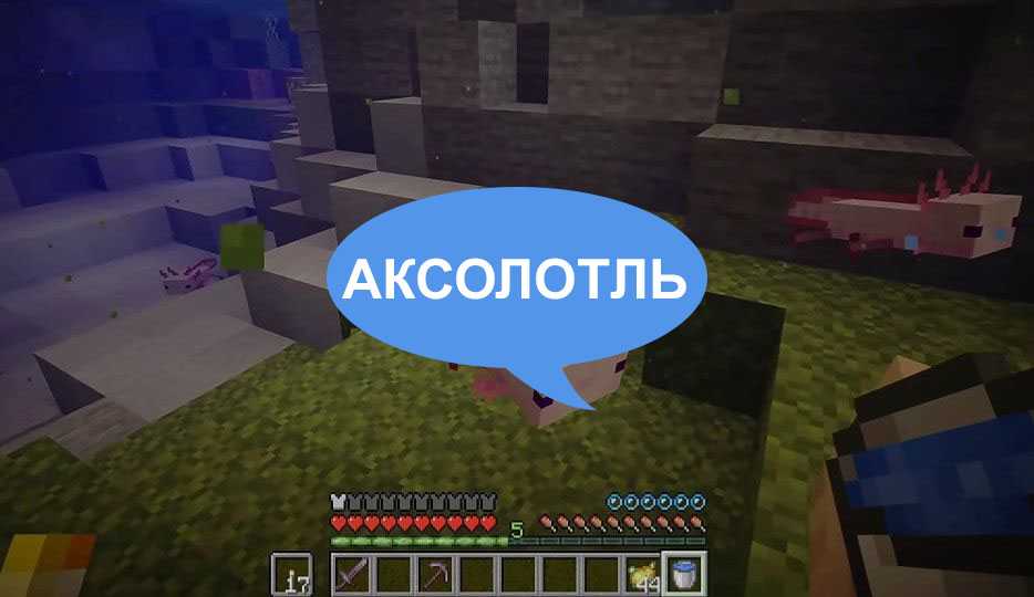 Аксолотль является лучшим другом пользователя в подводном мире Майнкрафт 1.17.90, 1.17.20 и 1.17.0.0.