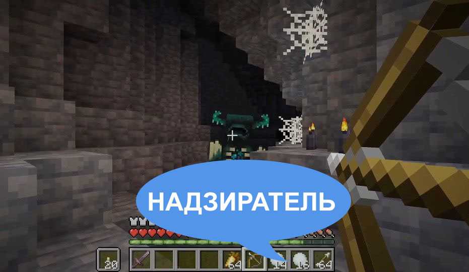 Warden – опасный противник в Minecraft на планшет. Этот моб водится в пещерах, он не имеет зрения, зато «ушастый». Рожки Вардена реагируют на вибрации и звуки, а его особенность – чем быстрее жертва убегает, тем выше его скорость передвижения. Имеет урон 30 единиц за удар и 84 сердца.