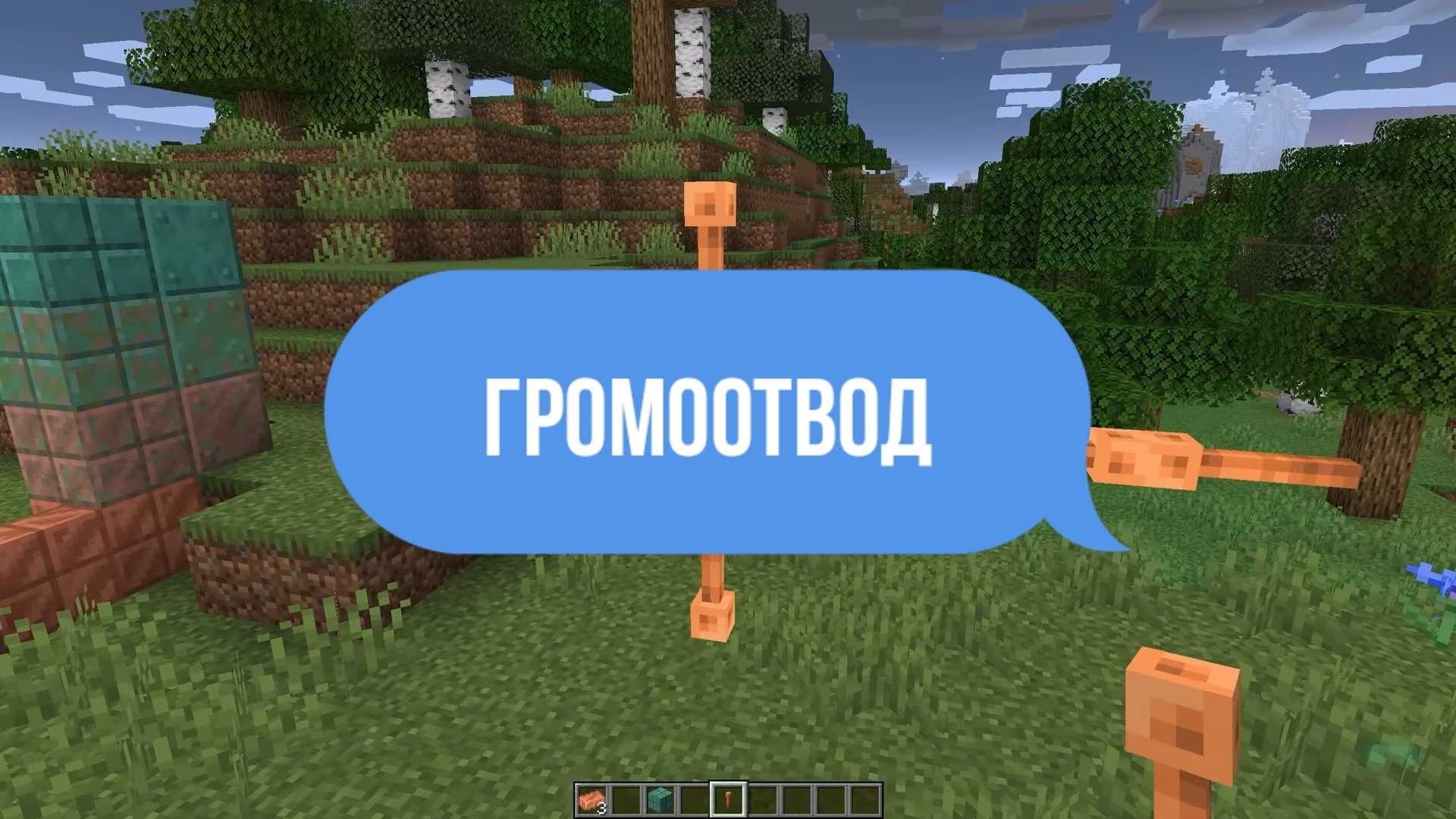 Задача громоотвода в Майнкрафт 1.17.90, 1.17.20 и 1.17.0.0 заключается в полном или в частичном поглощении молнии. Для этого достаточно его скрафтить из 3 слитков меди и поставить на высоте.