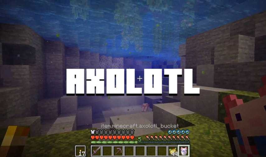 Еще одно существо в Майнкрафт 1.17, 1.17.0, 1.17.0.0 это аксолотль, это животное обитает в водоемах, его образ был взять из существующего организма в реальной жизни. Его можно поймать в ведро как рыбу, а также приручить. Он будет плавать с вами в море и атаковать всех недоброжилателей.
