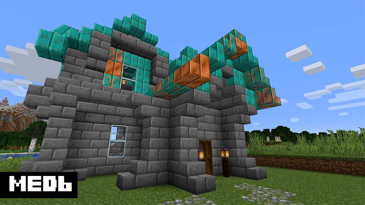 В Майнкрафт ПЕ 1.17 и 1.17.0 добавили медь. Найти ее можно в шахтах, встречается она очень часто. Из нее создаются блоки, полублоки и ступени. Также можно сделать инструменты, которые на уровень выше каменных.