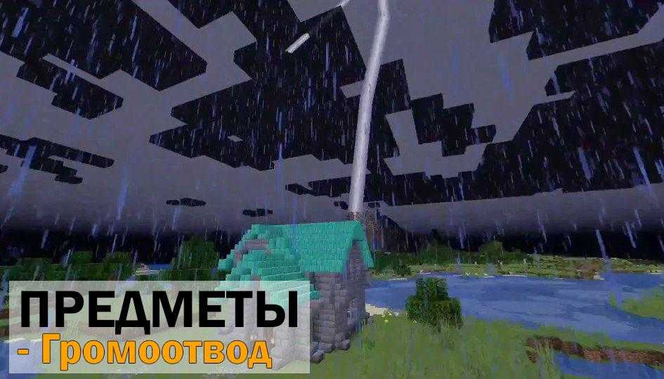 Небольшой стержень, создаваемый из медных слитков, позволяет защищать возгораемые постройки от попадания молнии. Громоотвод, в свою очередь, необходим для того, чтобы привлекать к себе удар молнии в радиусе нескольких блоков.