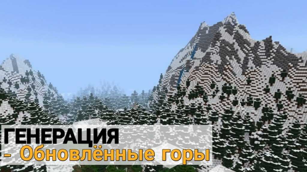 Вместо обычных, одиночных гор в Майнкафт ПЕ 1.17 и 1.17.0.0 теперь присутствует несколько локаций из различных блоков, среди которых есть:
