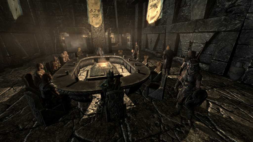 Что требуется от нас? Поговорите с Арнгейром, предложите устроить переговоры в Высоком Хротгаре Сходите к Ульфрику и к генералу Туллию, убедите их сесть за стол. В монастыре стороны будут решать — остановить ли войну ради борьбы с драконами и если да, то на каких условиях? В качестве рефери выступает наш герой. Какие бы решения игрок не принимал, перемирие состоится, так что можно подыгрывать той стороне, которая нам симпатичнее всего.