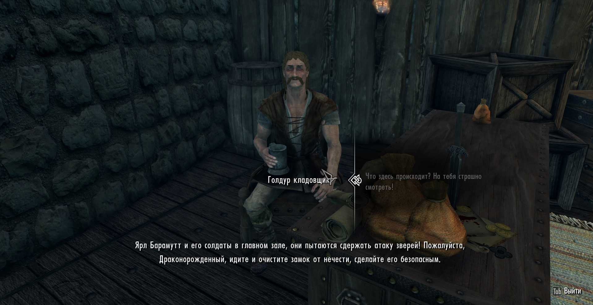 На складе, над конюшней, Вы найдёте человека по имени Голдур. Именно с него начинается сам квест.