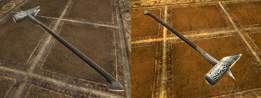 Внушительных размеров боевой молот может не на шутку напугать впечатлительного героя своим демоническим рельефом. Но куда страшнее его урон — 47! При ударе Волендранг не только запросто ломает самые крепкие кости, но и полгощает выносливость, что очень удобно для Довакина, ведь чтобы сделать хороший замах таким молотом, своих сил будет явно мало.