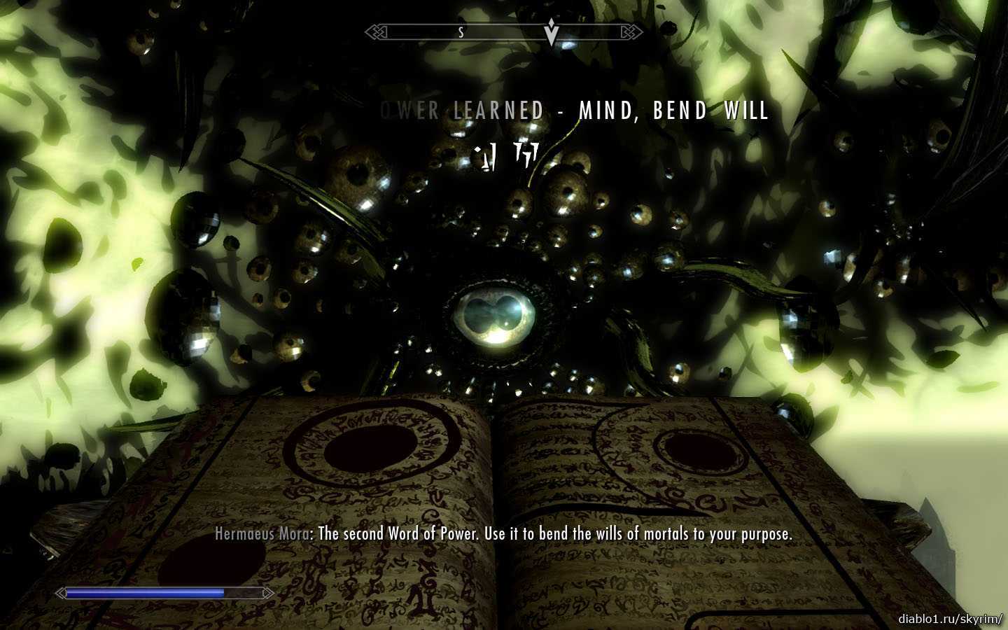 Читаем, разговариваем с Hermaeus Mora и он обучит нас второму слову в драконьем крике Bend Will: