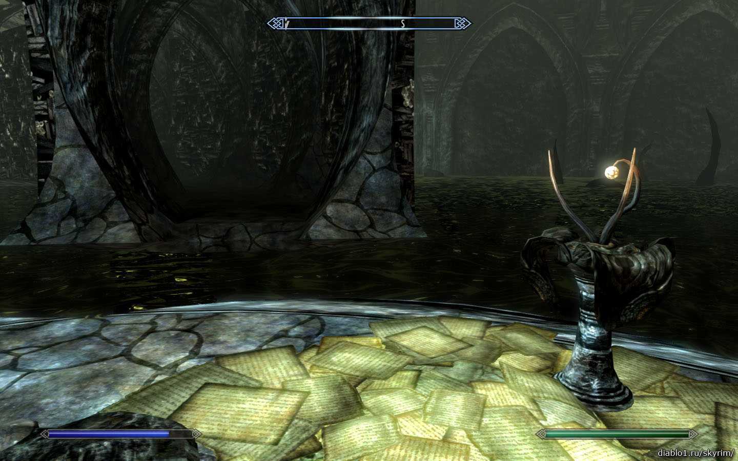 В самом подземелье никаких особых загадок нет. Немного ловушек, немного рычагов которые нужно использовать (но все они находятся на видных местах). Из противников вам будут встречаться культисты, драугры и скелеты.