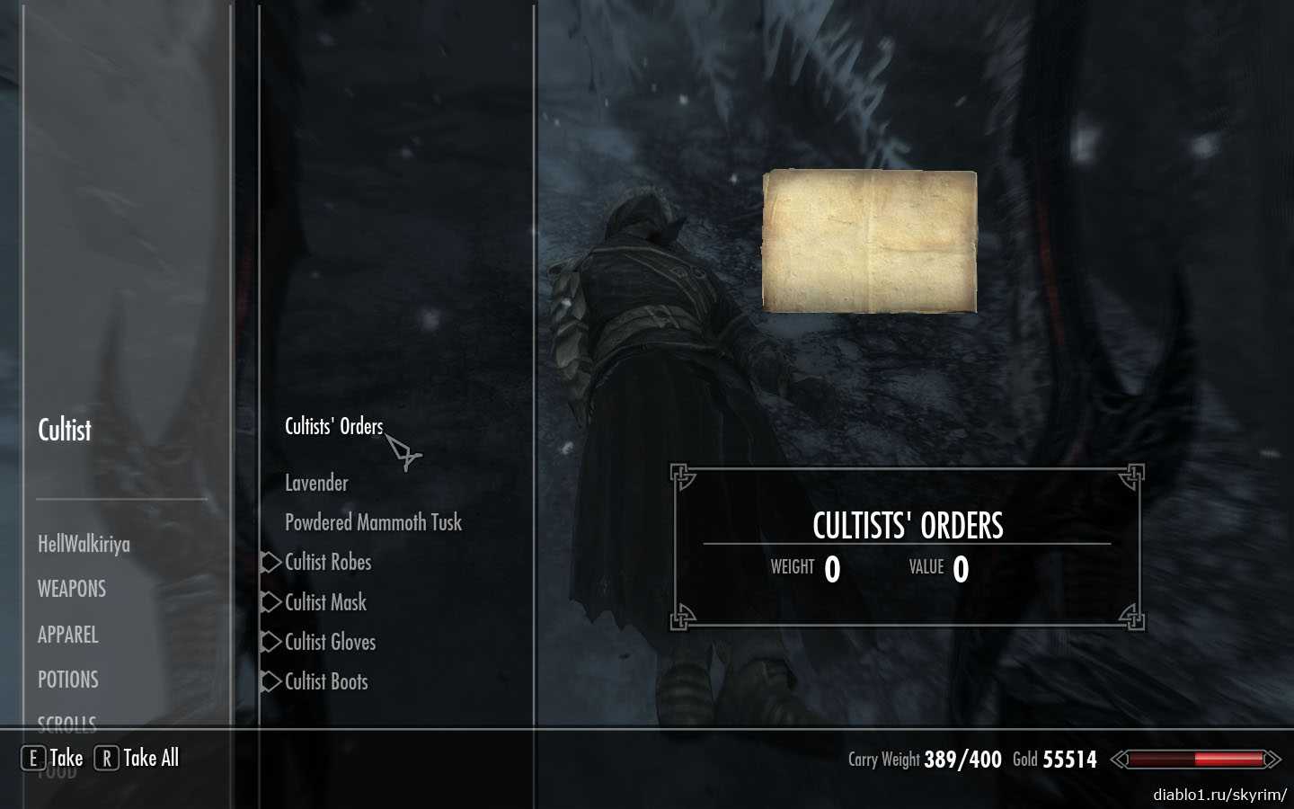 Убейте их, и с тела одного из них (на которого укажет маркер) возьмите и прочитайте записку Приказы культистам (Cultists’ Orders):