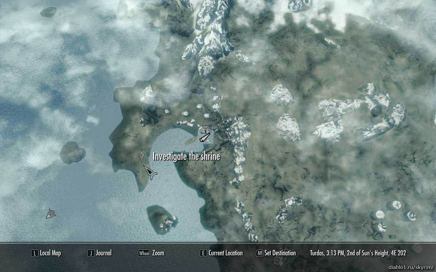 После чего маркер задания обновится, и укажет на причал около Винтерхолда, отправляйтесь туда: