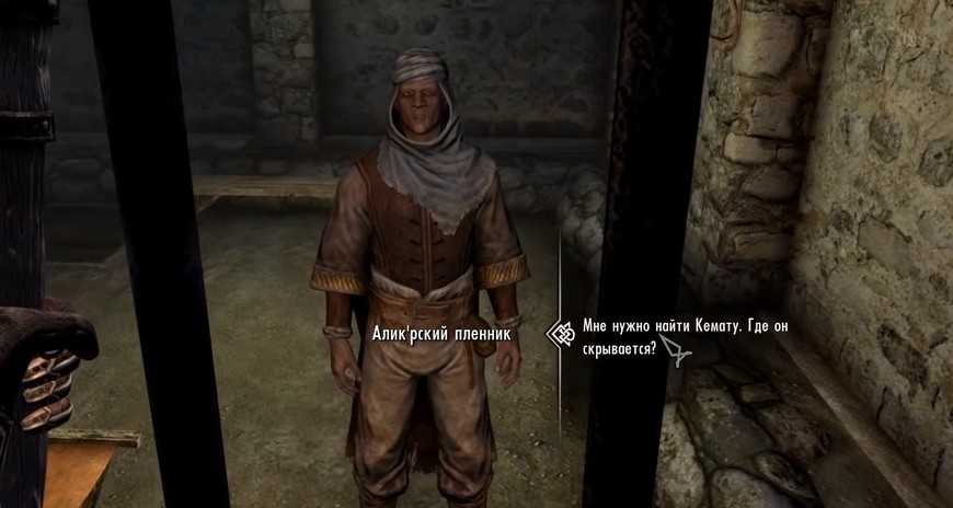 Мужчина расскажет, что товарищи бросили его здесь, так как он обесчестил Алик’р своей поимкой. Если Довакин освободит его, то заключенный расскажет все и начнет новую жизнь подальше от Скайрима.
