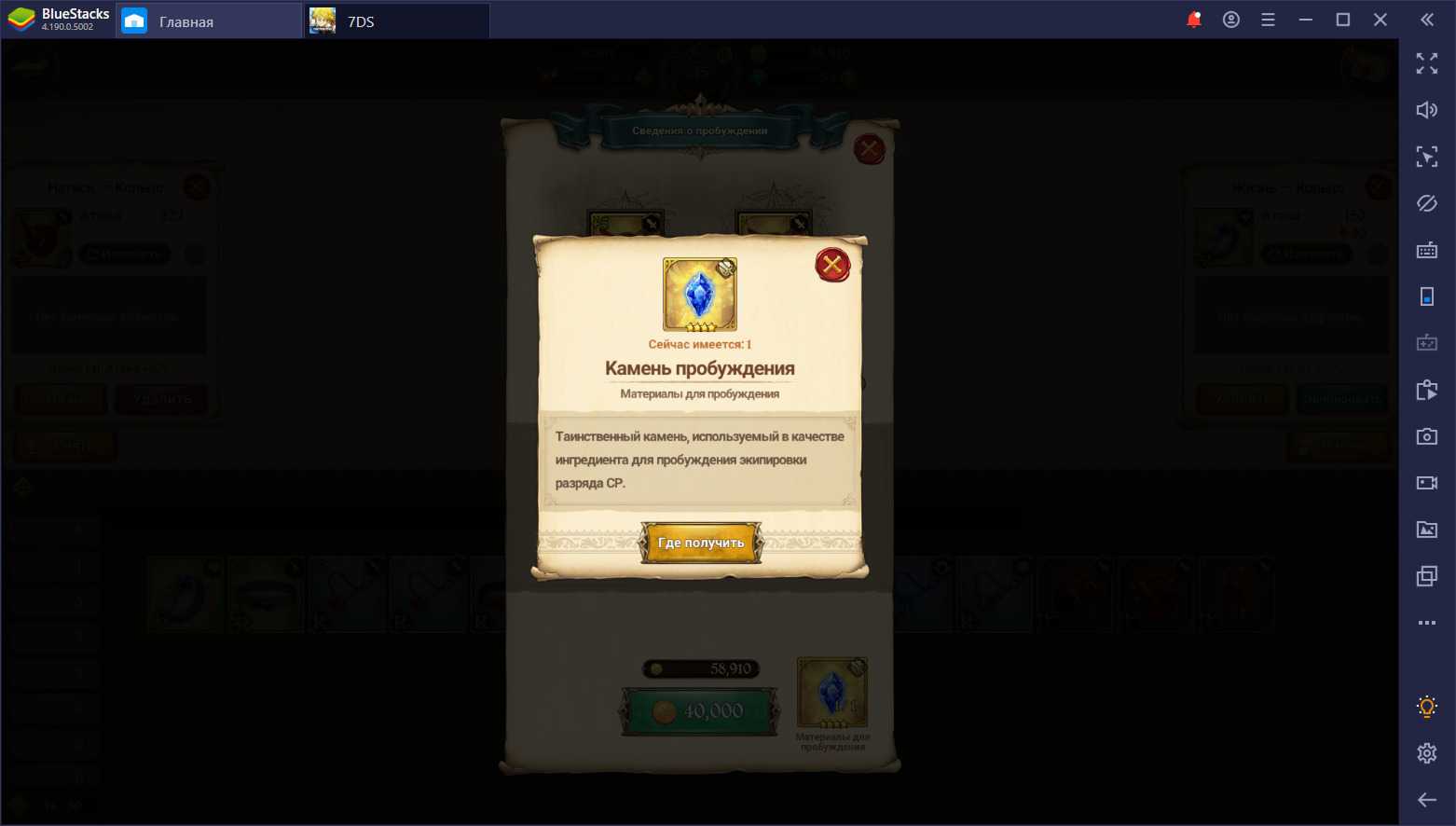 Чтобы провести пробуждение, вам потребуется специальный камень пробуждения. Добыть его можно в смертельных поединках деревень, магазине монет или в разделе “Обменные материалы”.